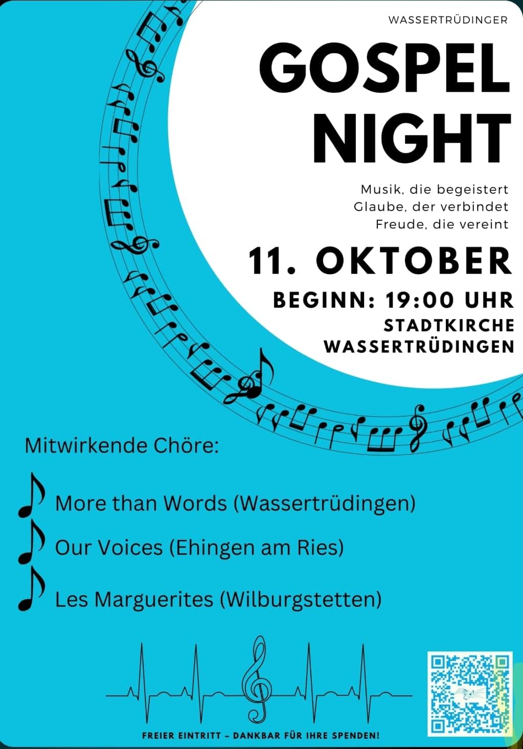 Die Gospel Night am 12. Oktober 2024 in der Evangelischen Stadtkirche Wassertrüdingen war ein großer Erfolg.